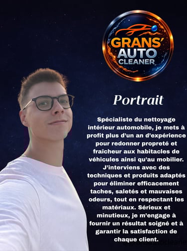 Aujourd’hui, je suis spécialisé dans le nettoyage intérieur, avec un vrai souci du détail : sièges, tapis, plastiques… rien n’est laissé au hasard pour offrir un résultat propre et agréable.